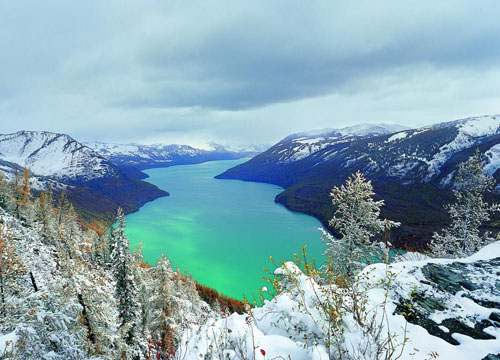 观鱼台是喀纳斯景区的制高点,登高望远,可以看到喀纳斯整体的雪景。喀纳斯湖畔,欣赏绝美的喀纳斯湖口晨雾,大雪过后会出现雪蘑菇的奇景,奇幻无比,令人不得不赞叹大自然的鬼斧神工。洁白的雪地上,一墩墩的雪蘑菇显得如此梦幻神奇,河岸边水汽冻结成冰凌,就像童话里的冰雪世界。晚住喀纳斯景区。